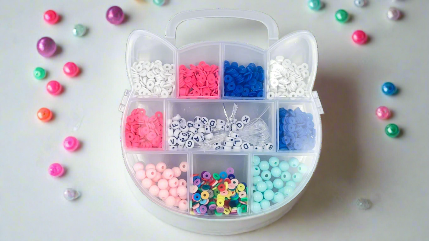 Create your own unique jewelry with our Beads DIY Box Kit! Perfect for kids. Spark your child's creativity and imagination with this fun and easy activity. Design, create, and wear your own jewelry!